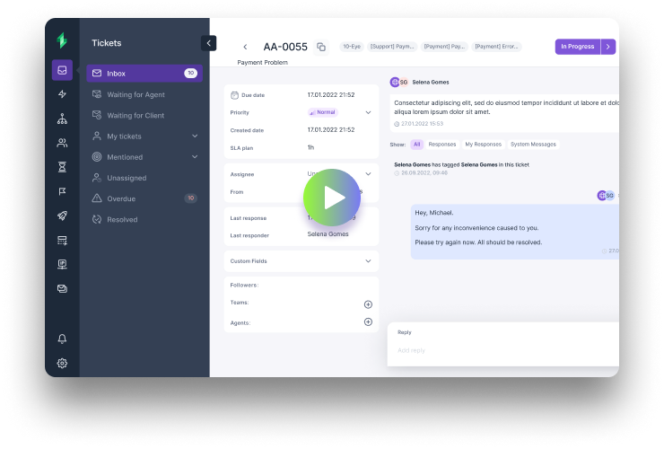 Receive notifications from various social channels to be able to proceed with ticket shortly.