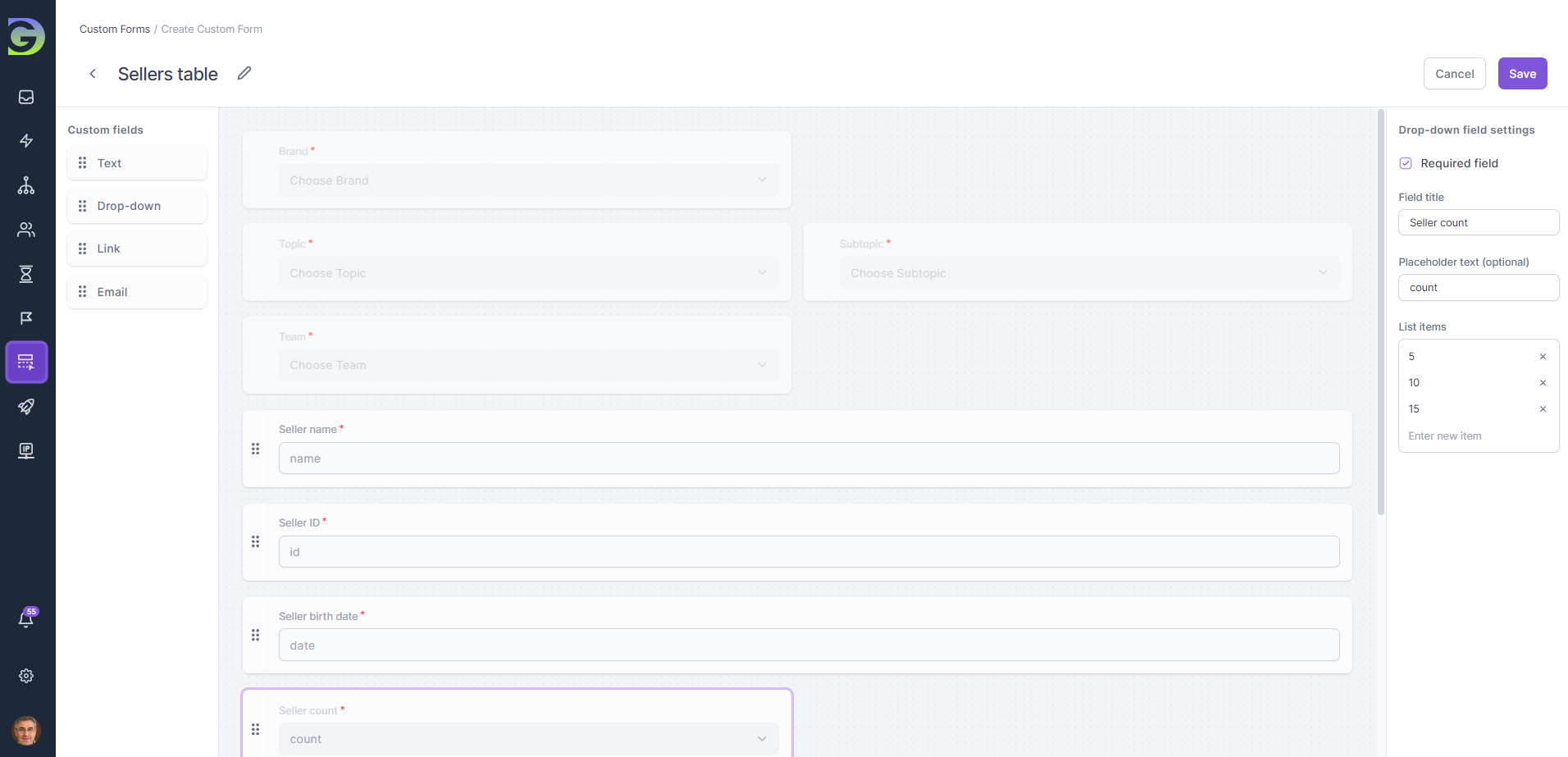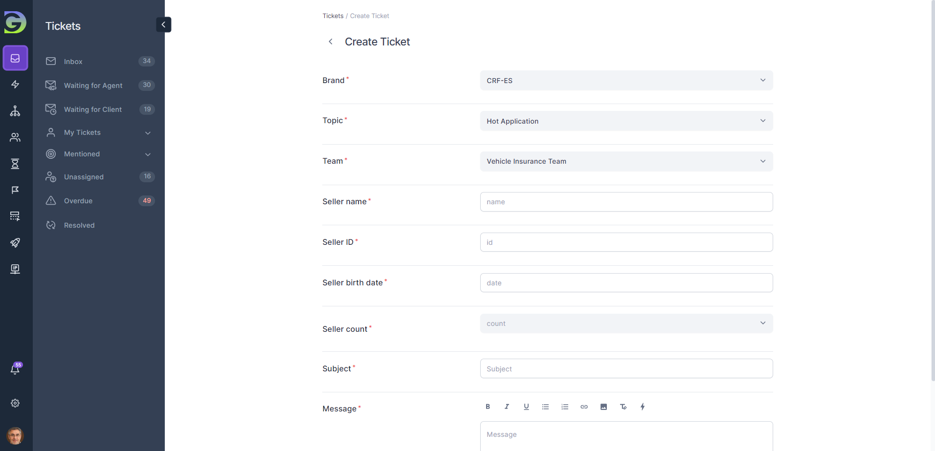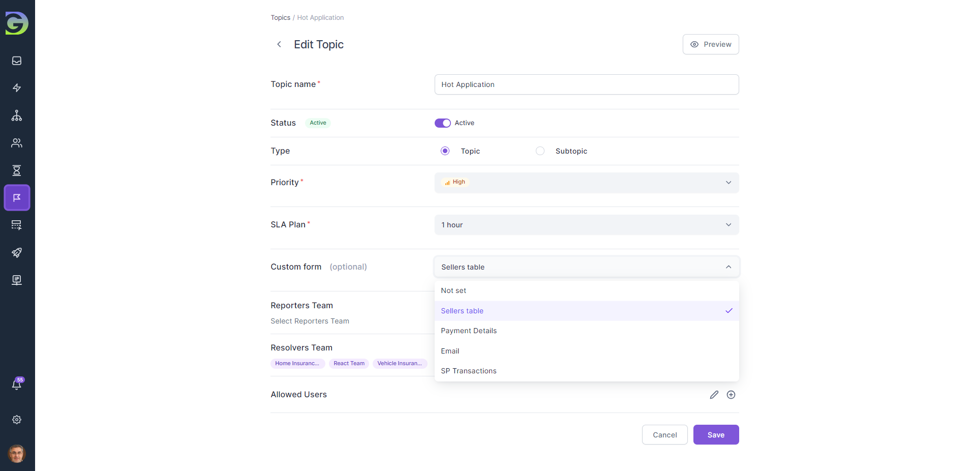 Custom forms are a powerful feature in Grogu Desk, allowing users to collect specific information related to the nature of the inquiry. This is an additional set of customizable fields that users can include when submitting a ticket for a specific topic. Custom fields streamline the ticket creation process by ensuring that support agents receive all necessary information upfront. This reduces back-and-forth communication and accelerates issue resolution.