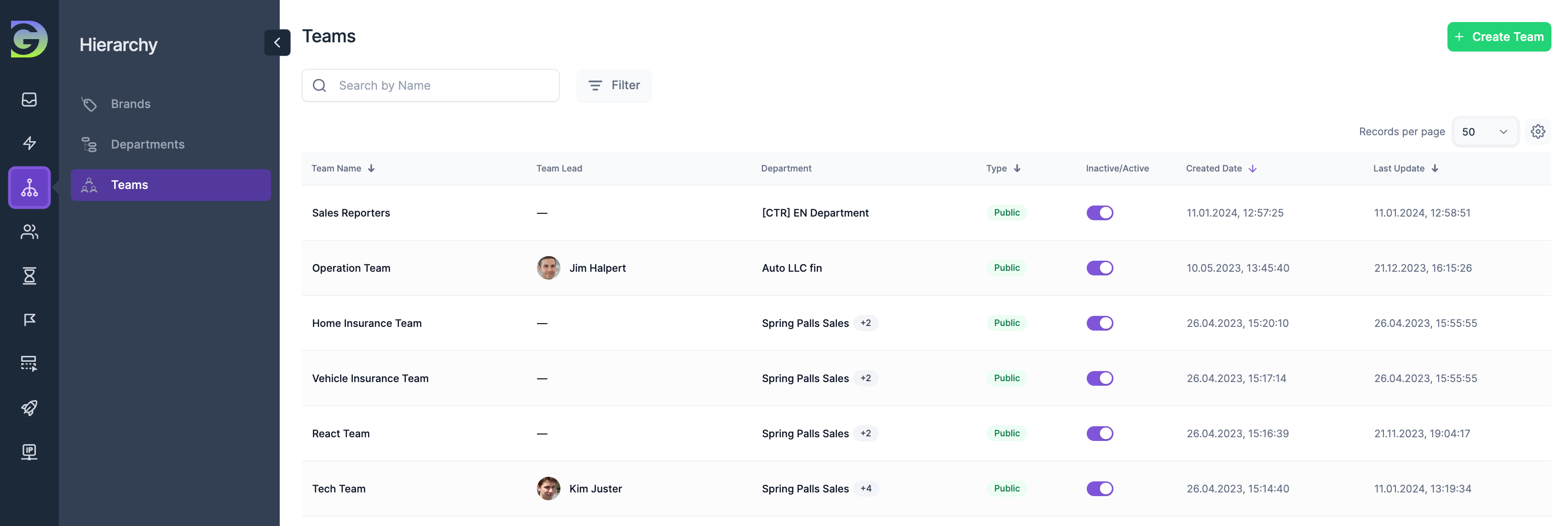 Hierarchy is designed to organize and manage tickets, as well as the personnel tasked with handling them. This system is essential for maintaining order and efficiency in processing requests. It consists of three key components: Brand, Department, and Team, each with distinct roles and structures.