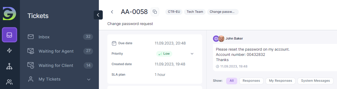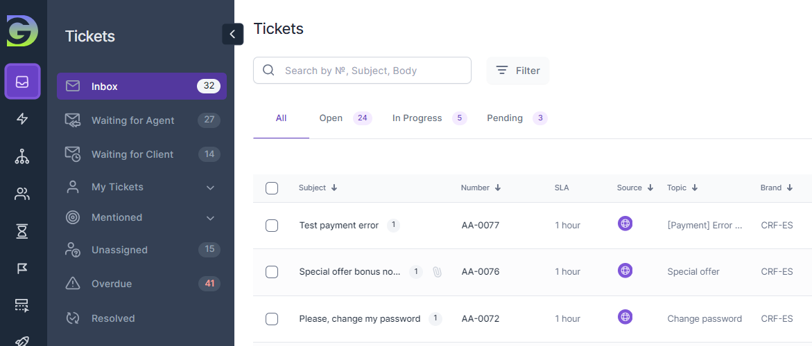 SLAs typically include predefined penalties that may be imposed if the service provider fails to meet the specified terms. In the Grogu Desk system, tickets that exceed the SLA deadline are automatically categorized into a distinct folder labeled "Overdue." It is crucial for agents to actively monitor this folder as a priority.