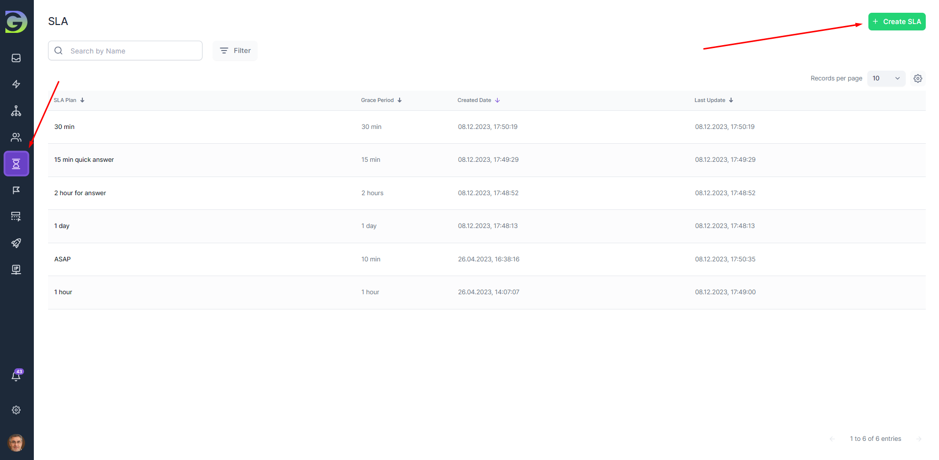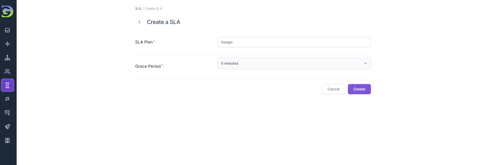 Creating an SLA plan in GroguDesk is a straightforward process. When creating an SLA, you can specify the plan's name and grace period (choose from a predefined list of timeframes). Once the SLA plan is created, it needs to be assigned to the relevant topic.